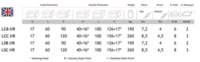 Всего комбинируется печь для пиццы ресторанов. Сельский или нержавеющая сталь Передняя версия. Электрические элементы потепления в огнеупорной части стойки и потолок. Уравновешивается створка, откидная ниже. Защищенный внутреннее освещение. Независимые внутренние камеры с отдельной стойке / потолке электронной настройкой.