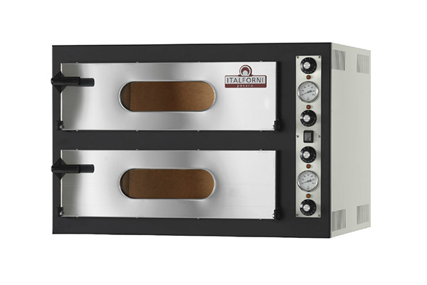 1/2 внутренняя камера электрическая духовка для пиццы ресторанов и пекарей. Варочная камера в алюминиевой листовой стали. Огнеупорные стойки. Уравновешивается открытия двери. Сопротивление бронированный из нержавеющей стали. Защищенный внутреннее освещение. Независимые внутренние камеры с отдельными потолок / стойки ТЕРМОСТАТИЧЕСКИЕ температуры.