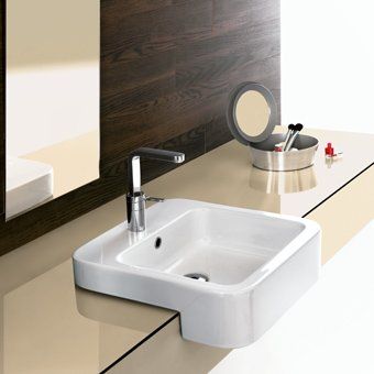 Only one hole. Half build in washbasin, surface-mounted installation.