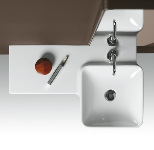 Square wall hung washbasin 82 with left shelf pre-punched for single tap hole.