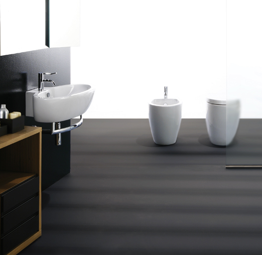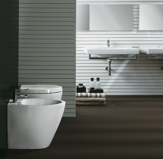 Back to wall WC with wall or floor outlet (curved pipe included).