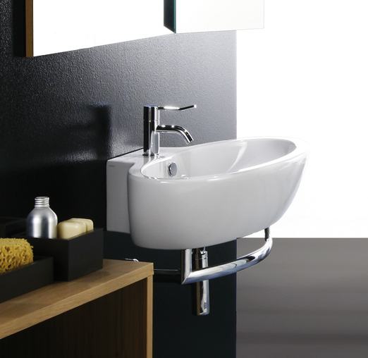 Oval counter top or wall hung washbasin 73 pre-punched for single tap hole.
